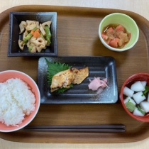 いつもお世話になっております。らいふ氷川台です。施設でご入居者が召し上がる食事をご紹介させていただきますこちらは夕食のメニューです・ごはん・赤魚の自家製西京焼き・れんこんの炒め物・トマトの香味和え・すまし汁自家製の西京味噌の甘みと塩加減が絶妙で、とても美 ...