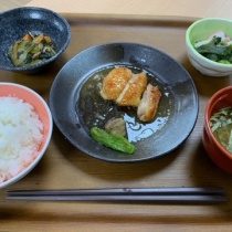 いつもお世話になっております。らいふ氷川台です。施設でご入居者が召し上がる食事をご紹介させていただきますこちらは夕食のメニューです・ごはん・鶏肉の甘辛焼き・チンゲン菜のさっと煮・酢味噌かけ・すまし汁鶏肉の甘辛焼きは鶏肉がジューシで柔らかく、とても美味しか ...